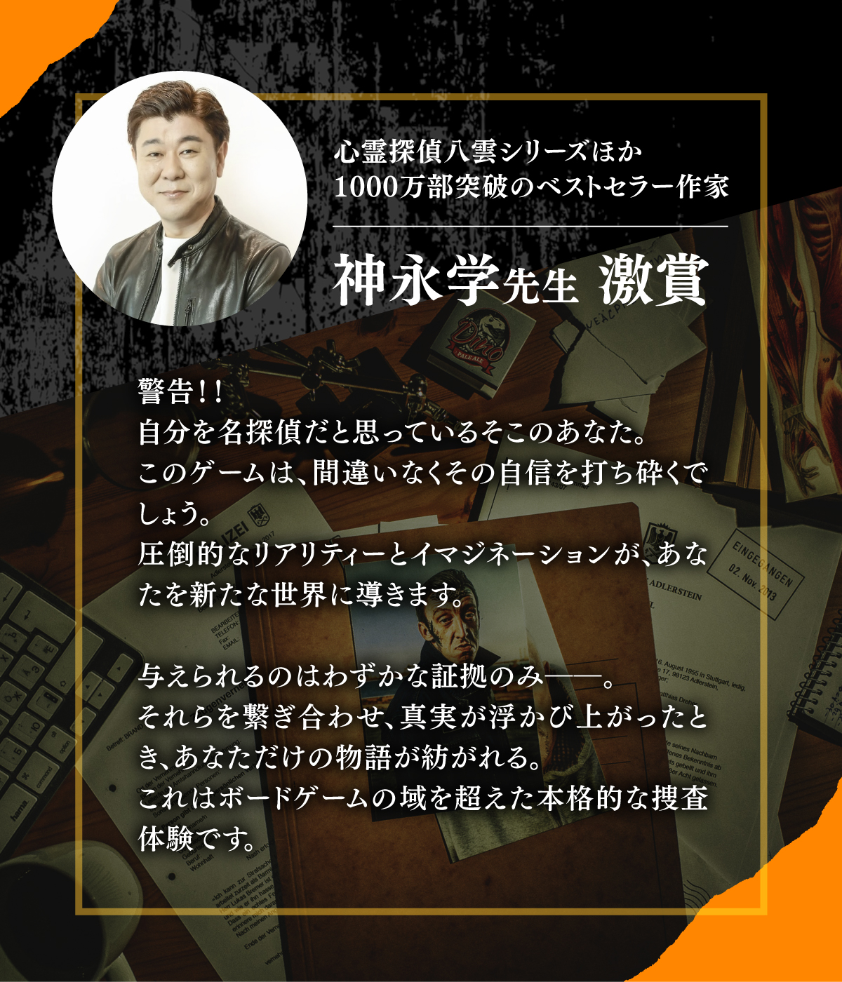 今回、日本で初翻訳される『Detective Storiesシリーズ』の他に、手のひらサイズの脱出パズル『Cluebox』や、アクション要素を組み合わせた新感覚ボードゲーム『BRETTSPIELE』など、ジャンルを越えた体験型プロダクトを次々に開発。